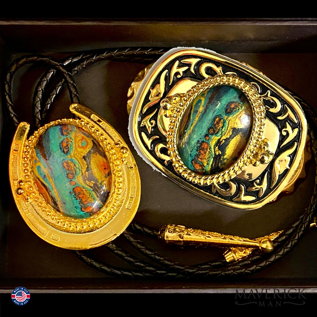 Love the stones, got belt buckle and matching bolo tie for me and my grandson. Quality is superior, service is awesome, friendly and courteous. I have bought several bolos and buckles and they all are great. Will continue to buy from the Maverick Man