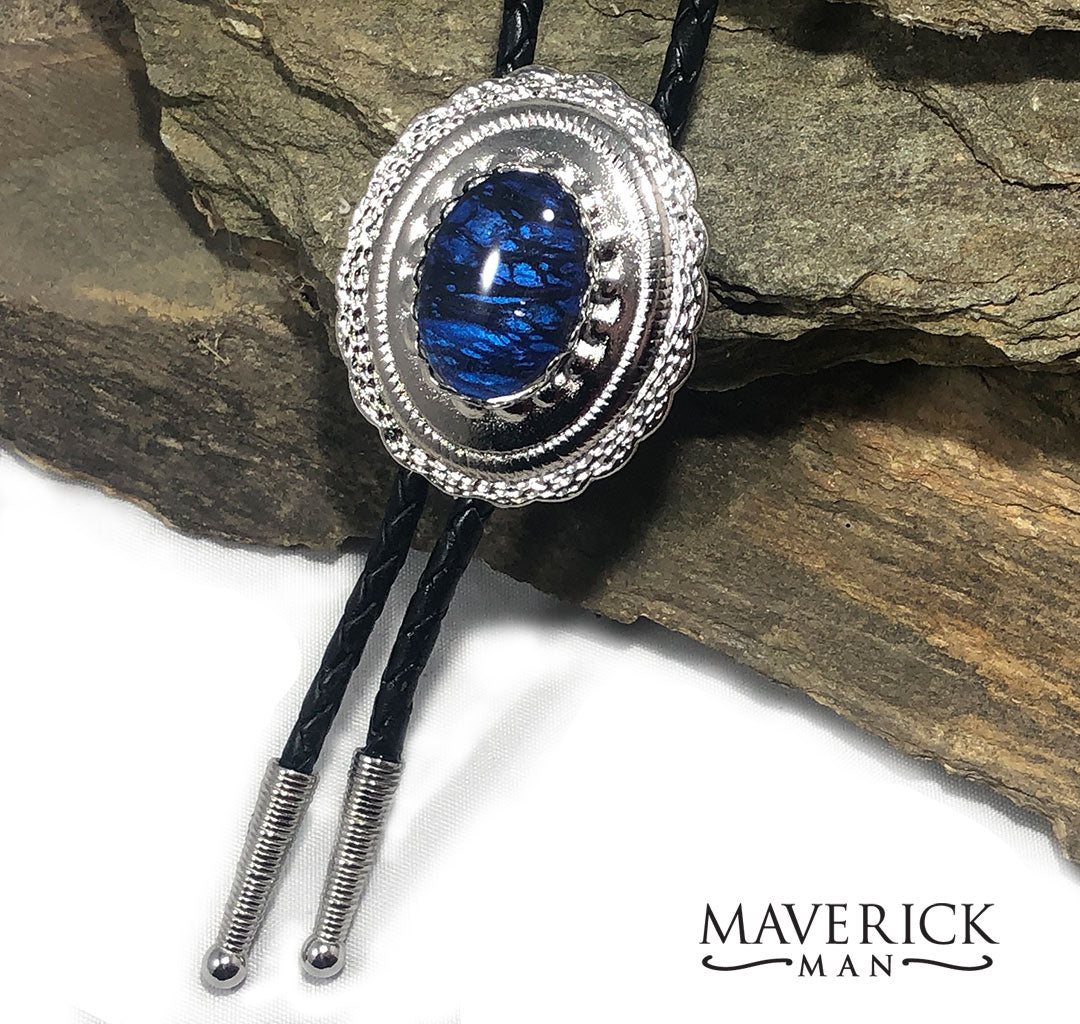 Handsome concho bolo with metallic blue and black stone