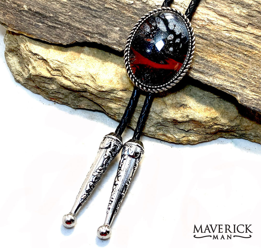 Our unusual stones are created as a piece of an original painting, preserved under glass. Unique. Distinctive... and totally uncommon. No two stones alike. Our bolos come with a 38 inch, 4mm braided leather cord.