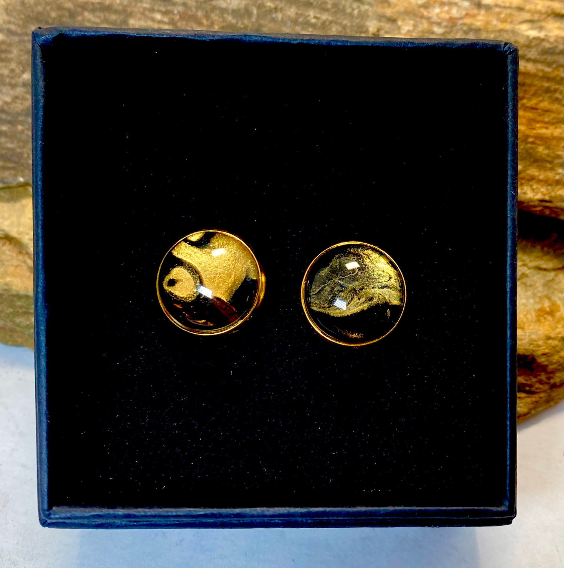 These .625" gold and black stainless steel cufflinks are part of our goldtones collection, using gold and black paints. (These are gold stainless steel. The second image is to show the back style only)