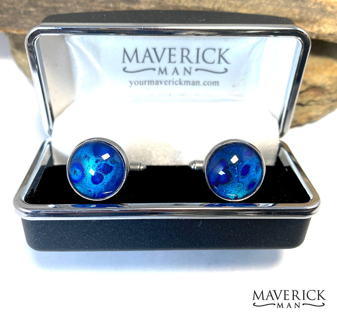 We know you don't always dress up enough to need cufflinks. But when you do, you want to be different. Each of our pairs of cufflinks are stainless steel, and have unique stones made with our 10-step hand painting technique.