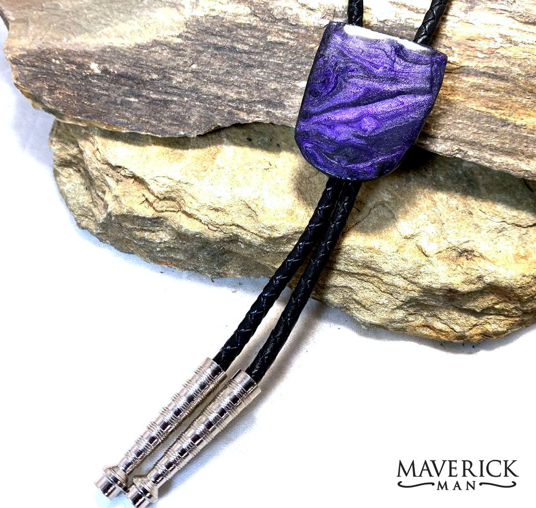 Every Maverick Man bolo comes with a 4-5mm braided leather cord. Our unusual stones are created as a piece of an original painting, directly onto slate we've quarried from GA and PA. Unique. Distinctive... and totally uncommon.